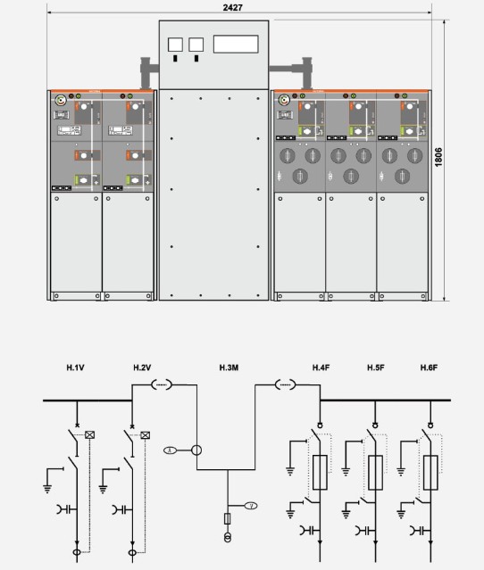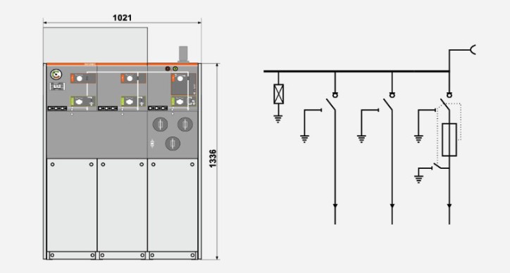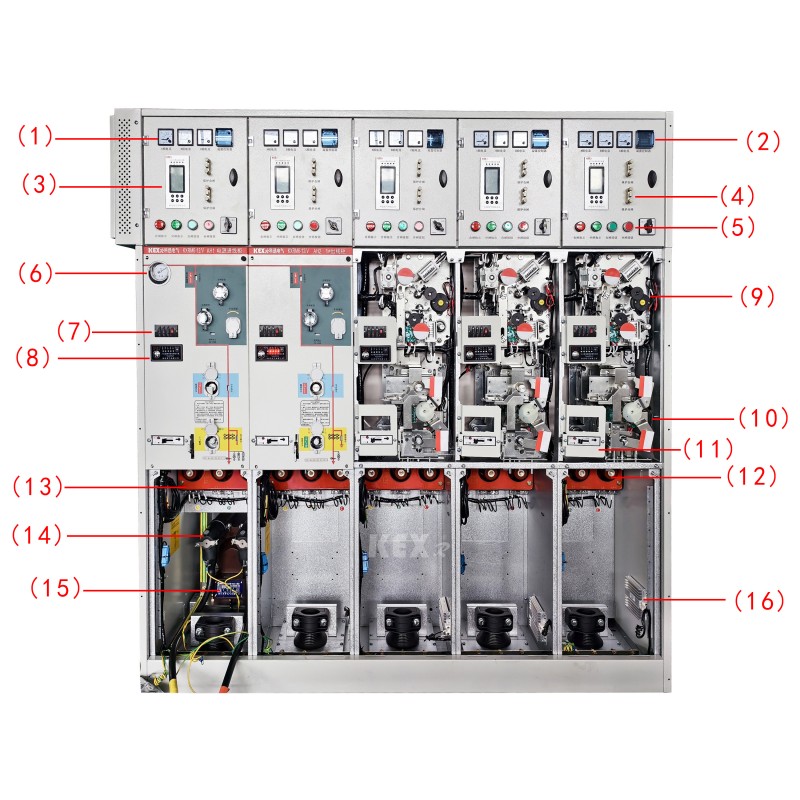 ▶Позиция на превключвателя на товара 2NO+2NC, позиция на превключвателя за заземяване 2NO+2NC, манометър 1NO със сигнал и дъгогасител 1NO със сигнален контакт.
