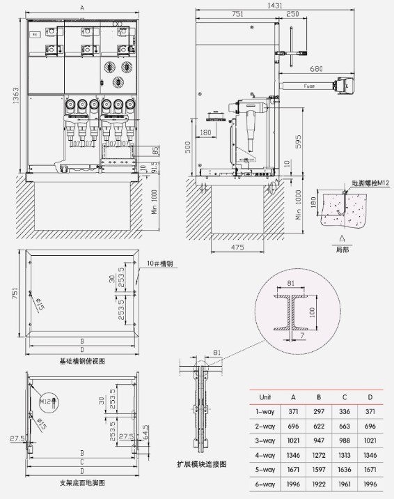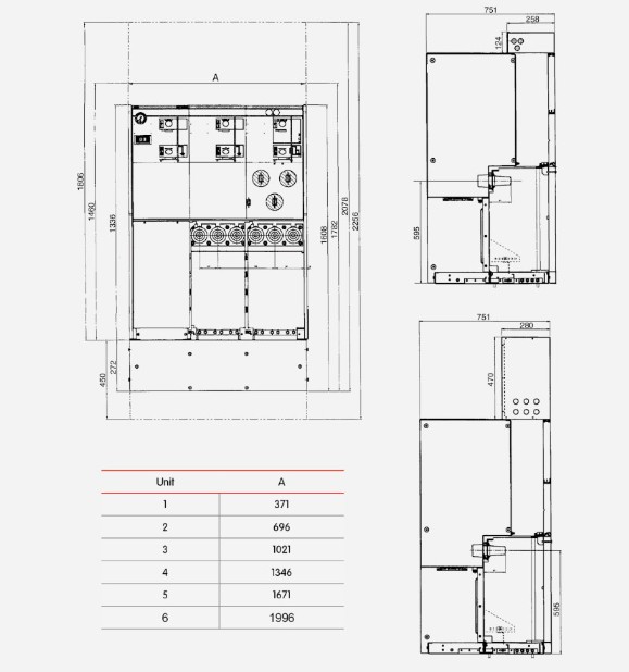 ◆ Шкафът е разделен на комбинация от фиксирани единици и комбинация от разширяеми единици.