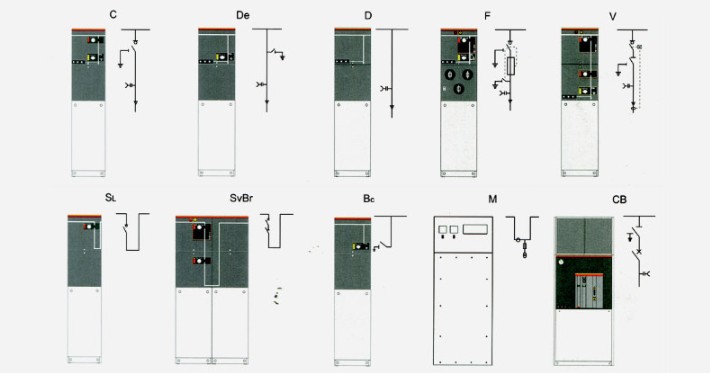 Стандартната комбинация от комбиниран тип GIS шкаф KX-RM6 може също да осигури следните конфигурации
