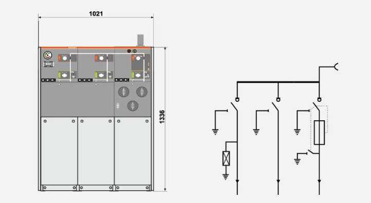 ▶Превключвател за натоварване с три станции, първият край на предпазителя е механично свързан със заземителния превключвател в края на предпазителя.