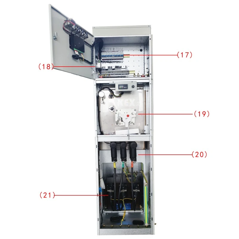Предаване на мощност: Закачете (затворете) горната и долната врата с прекъсвач (превключвател на товара) → превключвателят за заземяване с изолиращ превключвател → прекъсвачът (превключвател на товара) с предаване на мощност е завършен.