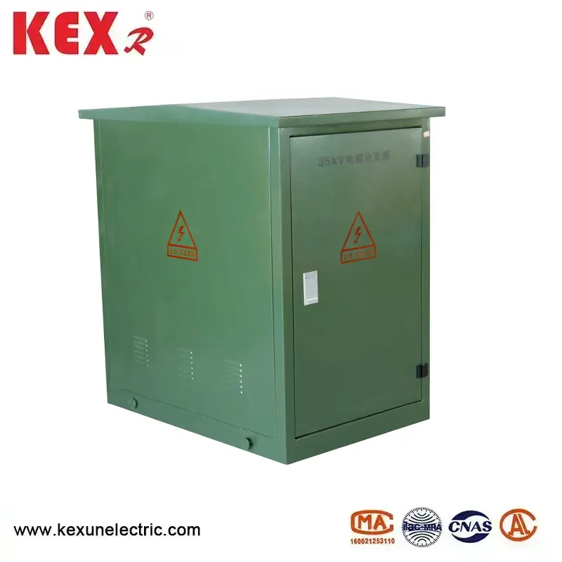 През последните години кутията за разпределение на кабели с 24 kV, специално произведена от Kexun Factory в Китай, се използва широко в системата за разпределение на мощността, която се характеризира с двупосочно отваряне на вратата, използвайки втулка на стената като свързваща шина, къса дължина, прозрачна подредба на кабела и без нужда от голямо преминаване на трикови кабели. Използваният кабелен конектор съответства на стандарта DIN47636. Модел: 35kV Марка: Kexr