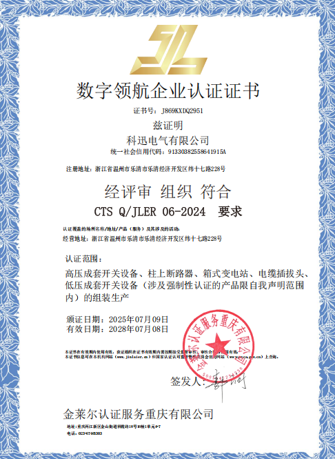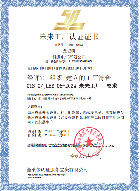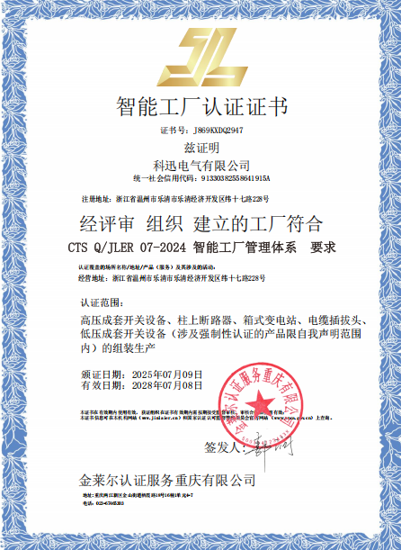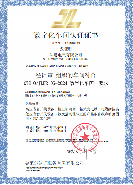 Gunler Certification Service Chongqing Co., Ltd., е независима сертификационна институция на трети страни, специализирана в сертификационния бизнес. Той е сертифициран от Националната администрация за сертифициране и акредитация (CNCA) и е фабрично сертифициран за много електрически компании. Това е добре известна и авторитетна институция за сертифициране на трети страни в Китай. Kexun се свърза с Gunler Company през първата половина на 2025 г. Поради натоварения бизнес, Gunler Company е предвидено да дойде в Kexun за преглед в специалния ден на 1 юли. След една седмица за одит на фабриката, одиторите на Gunler присъдиха Kexun Five сертификати, включително дигитален семинар, бъдеща фабрика, цифрово пилотно предприятие, интелигентна фабрика и интелигентна производствена производствена фабрика. Обхватът за сертифициране включва превключватели с високо напрежение, прекъсвачи след вериги, подстанции от тип кутии, кабелни щепсели и превключватели с ниско напрежение.